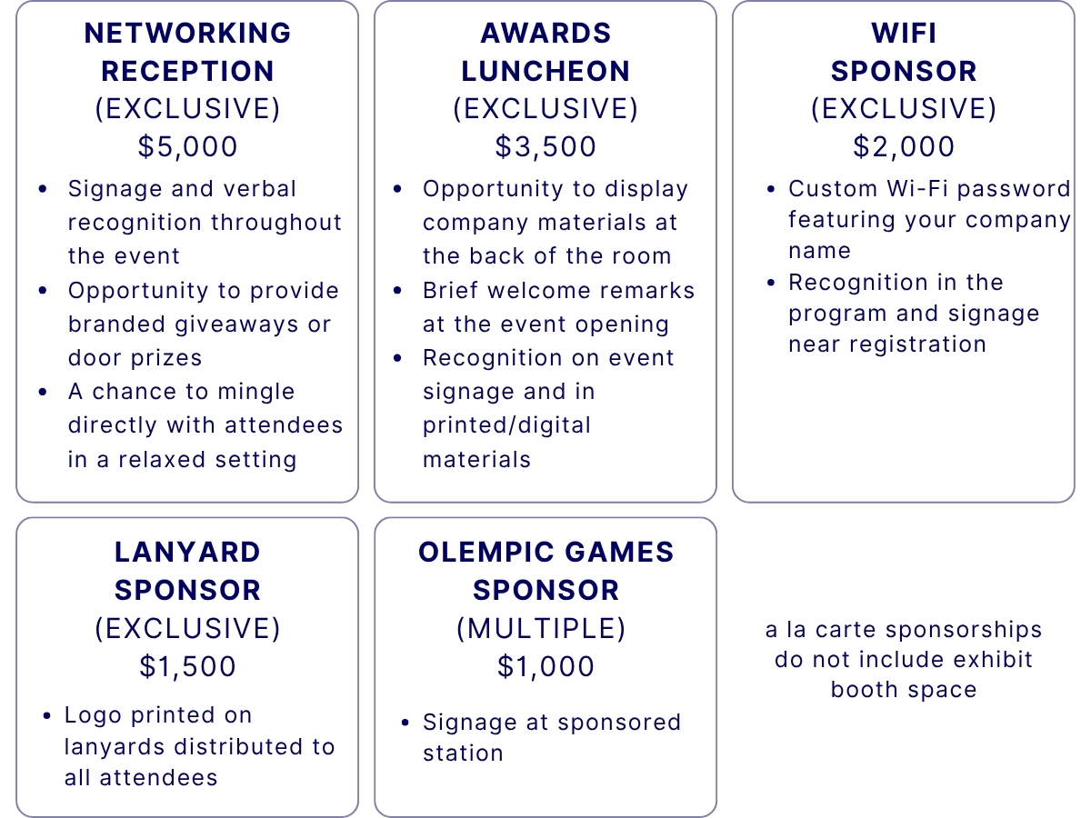 In addition to our exhibitor and sponsorship packages, we have crafted a range of supplementary sponsorship opportunities tailored to suit your company's needs and to demonstrate your support.